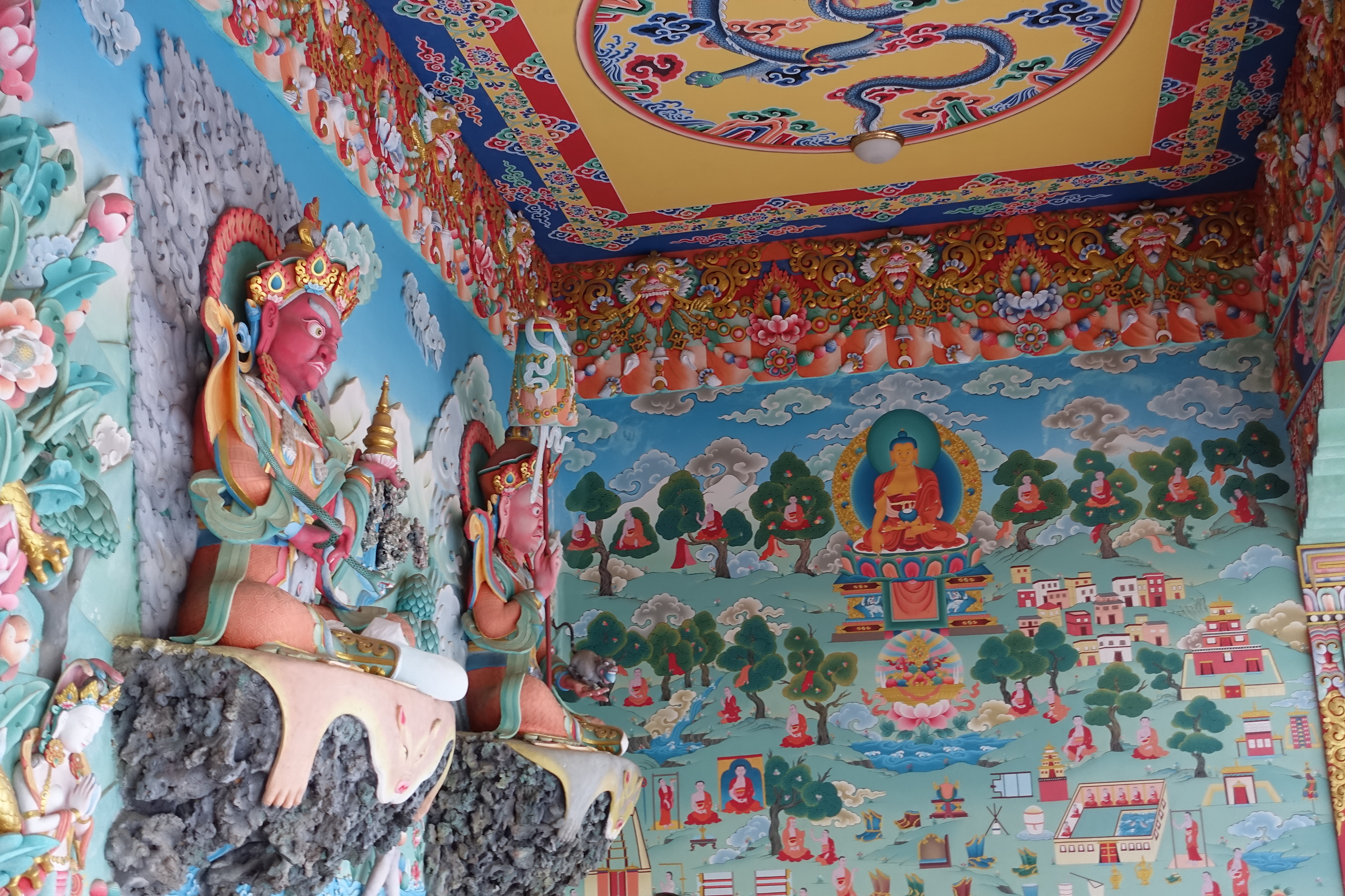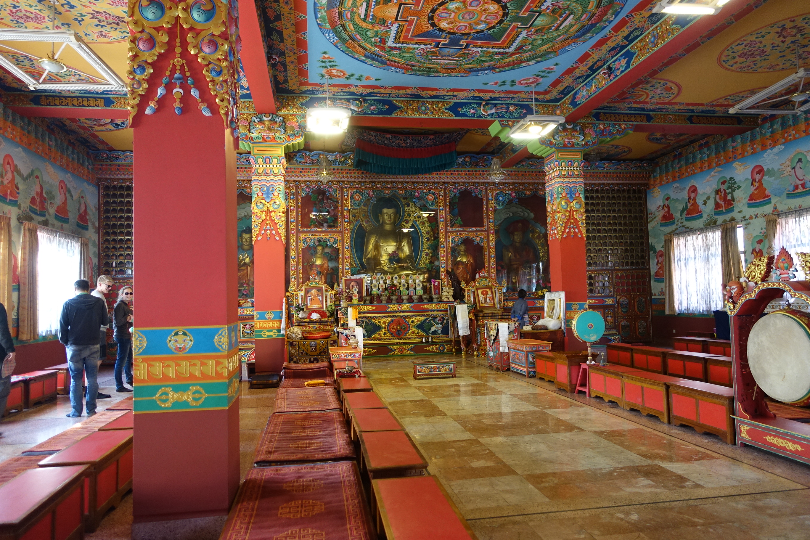 Wir durften uns alles ansehen. Die bunten Figuren und Malereien sind lebensfroh. Es duftet nach Räucherstäbchen und man kann sich hier vorstellen, wie nicht nur Mönche hier beten und Meditieren. Auch Gläubige aus dem Tal kommen hier her, wenn sie etwas auf dem Herzen haben oder einfach nur ihrem Glauben Respekt zeigen wollen.