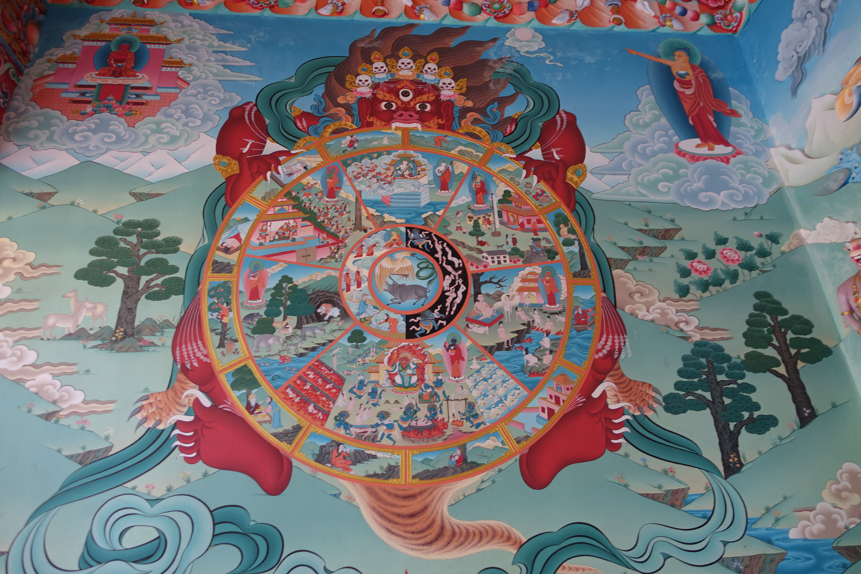 Das Kloster ist normalerweise bewohnt, die kleinen Mönche, die Lamas, gehen hier zur Schule und lernen. Es bietet auch Platz für Touristen, die hier die Ruhe suchen, Abstand von Alltag und Hetze haben möchten. Hier wird meditiert und gebetet. „Om mani padme hum“ hat zu tun mit dem Lebenskreis. Die sechs Silben „Om mani padme hum“ sind die Grundlage von Gesetz, Recht und Sitte, ethische und religiöse Verpflichtungen sowohl im Hinduismus als auch im Buddhismus.