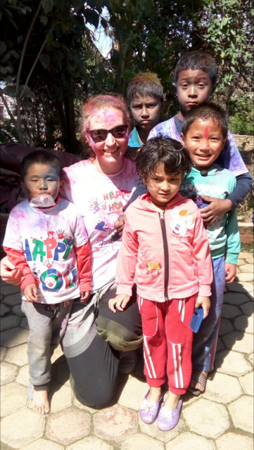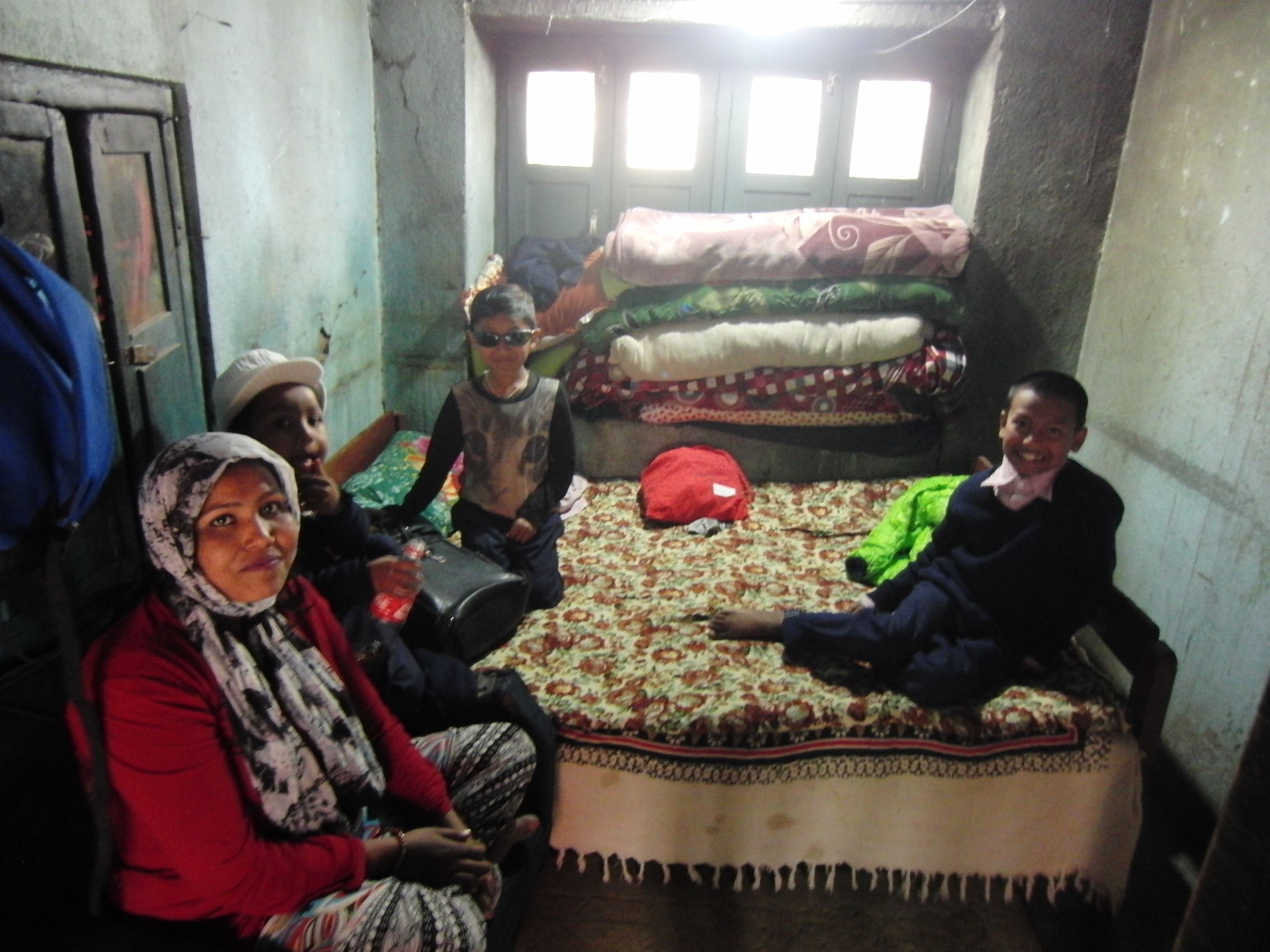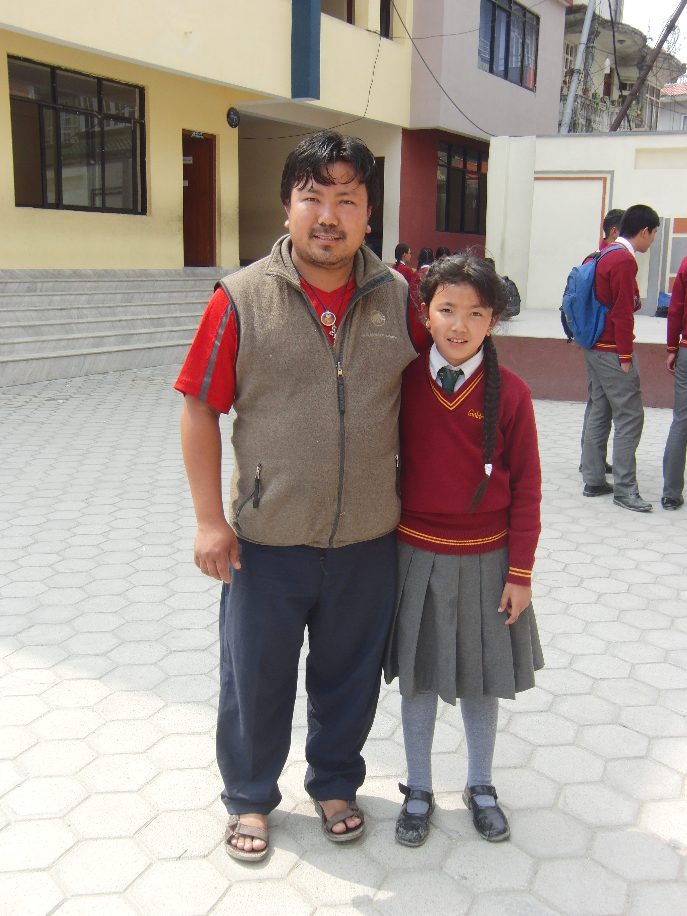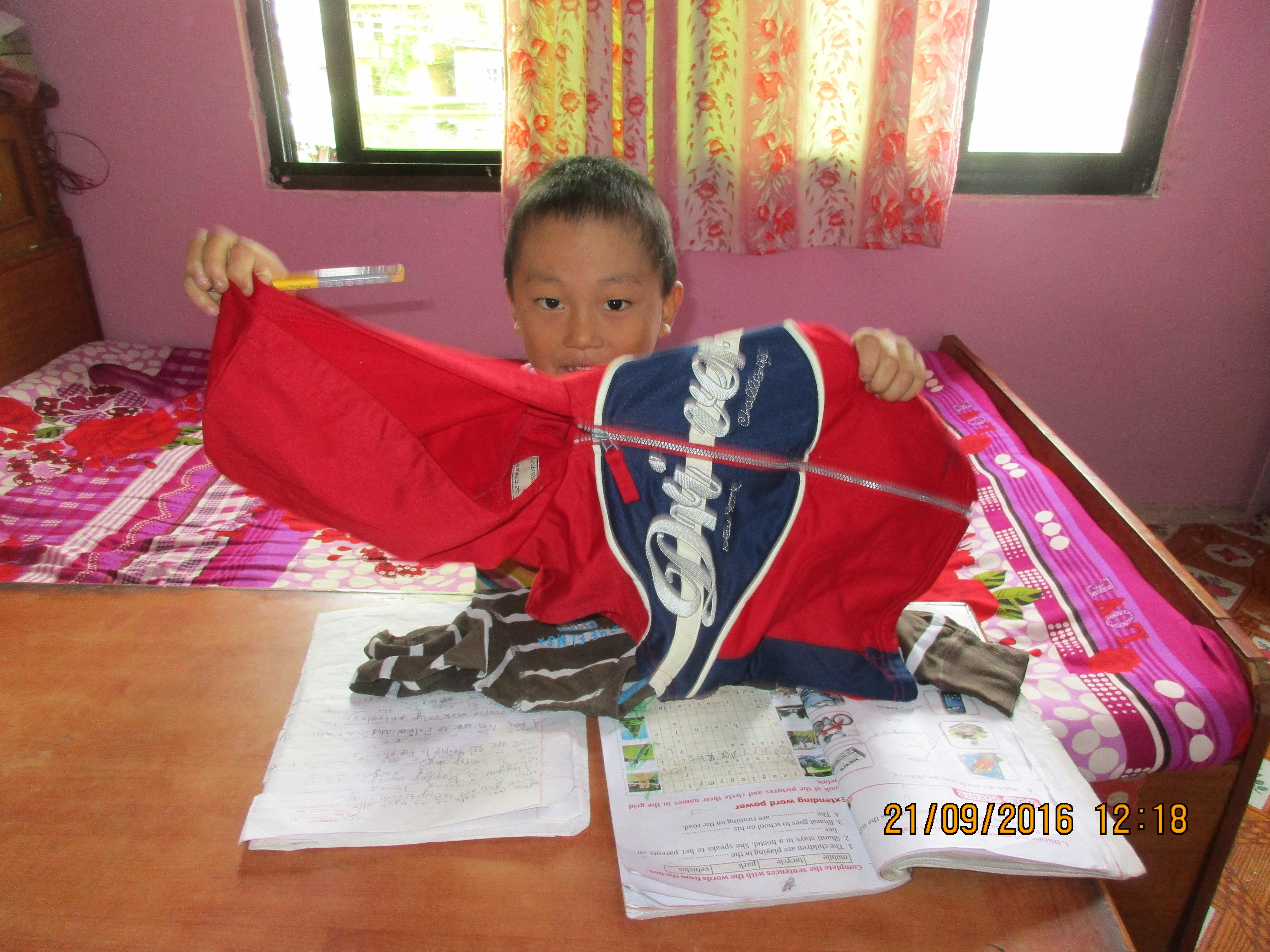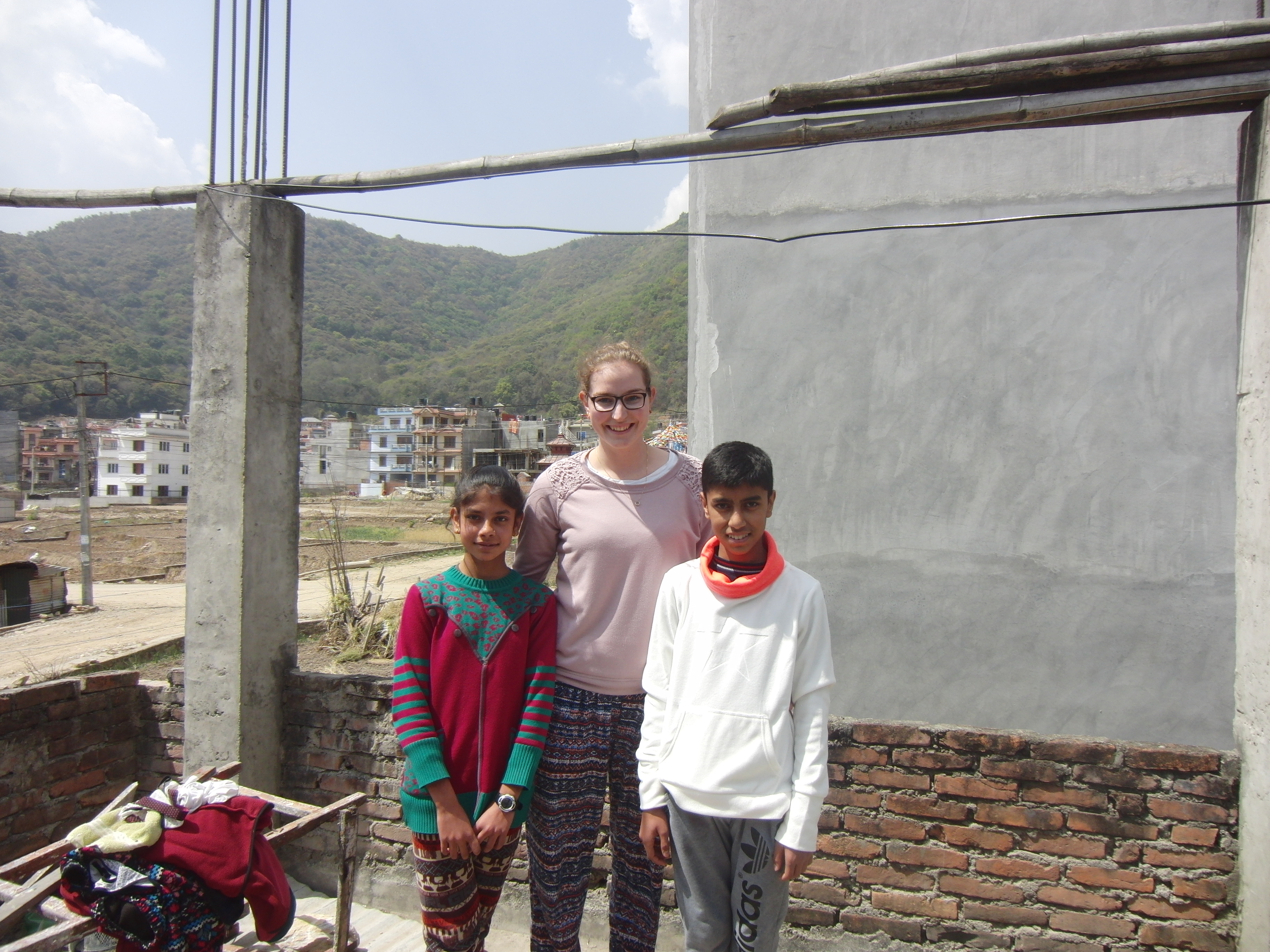 Ich habe 2 Patenkinder besucht. Beide leben jeweils zusammen mit ihrer Tante ungefähr 30-50 Minuten von Swayambhunath entfernt. Nach einer holprigen und matschigen Motorradfahrt mit Ras (Reiseleiter) kamen wir zuerst bei Prem Kumar an. Er war gerade im Aufbruch in die Schule zu gehen. Die Tante war sehr gastfreundlich und hat uns auf Nepali-Tee und Kekse hereingebeten. Die Zimmer waren zwar einfach und klein, dennoch sehr gemütlich. Anschließend haben wir Niyos etwas außerhalb der Stadt besucht, der uns mit einem schüchternen Lächeln begrüßt hat. Er hatte an diesem Tag keine Schule und war gerade dabei seine Hausaufgaben zu machen. Die beiden Jungs haben sich sehr über Stofftiere und Klamotten aus den Spendenpaketen gefreut. 😉