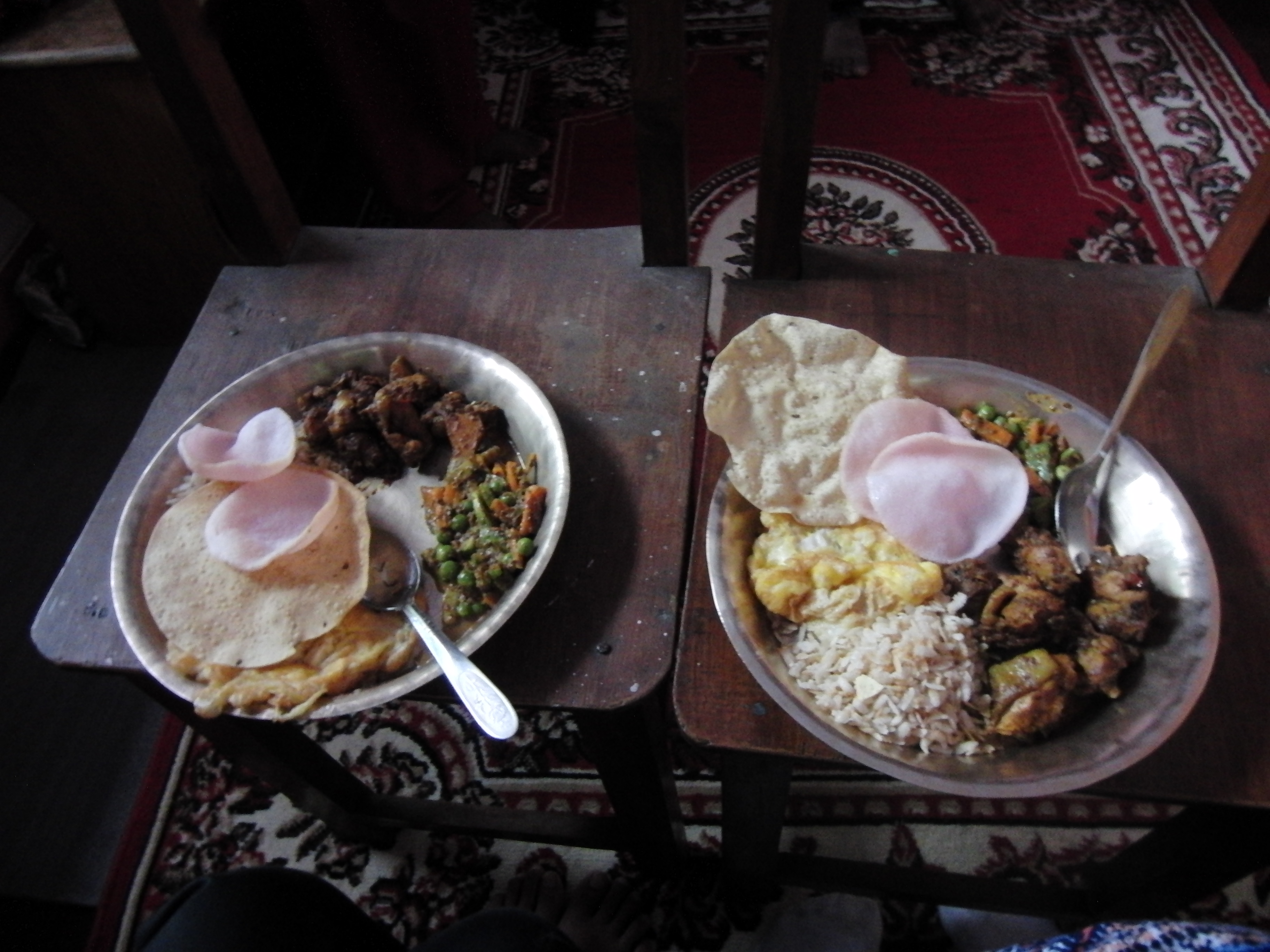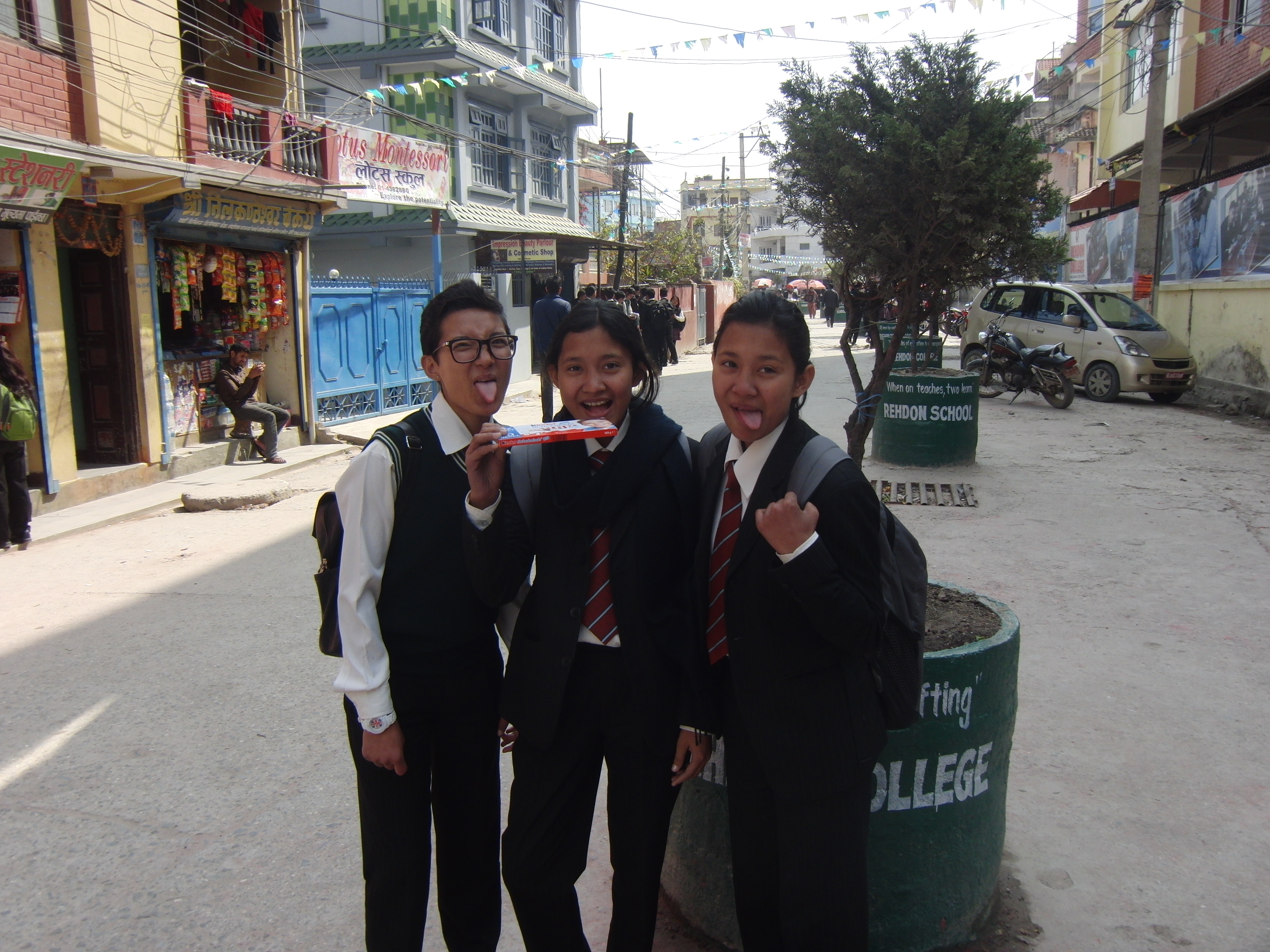 Unsere Patenkinder Pasang, Phurba und Mingma haben mich neulich zum Abendessen zu sich nach Hause eingeladen. Sie leben mit ihren Eltern in der Nähe von Thamel. Zur Begrüßung gab es selbstgemachte Pommes, Krabbenchips und Cola. Pasang und Phurba sind 14-jährige Zwillingsschwestern, die man nur schwer auseinanderhalten kann und deren große Schwester heißt Mingma und ist 17 Jahre alt. Sie arbeitet mit mir zusammen für die Patenschaften. Pasang schaut gerne Cartoons und hat eine gute Hand fürs Zeichnen. Ich durfte all ihre Zeichnungen sehen. Da alle drei Mädchen kleine Plappermäulchen sind gab es keine stillen und unangenehmen Momente. Zusammen haben sie ein sehr leckeres Abendessen gekocht. Das Nationalgericht Dhaal Baat gab es und dazu noch Yoghurt und heißen Zitronentee. Wir haben viel gelacht und auch einige Bilder gemacht.