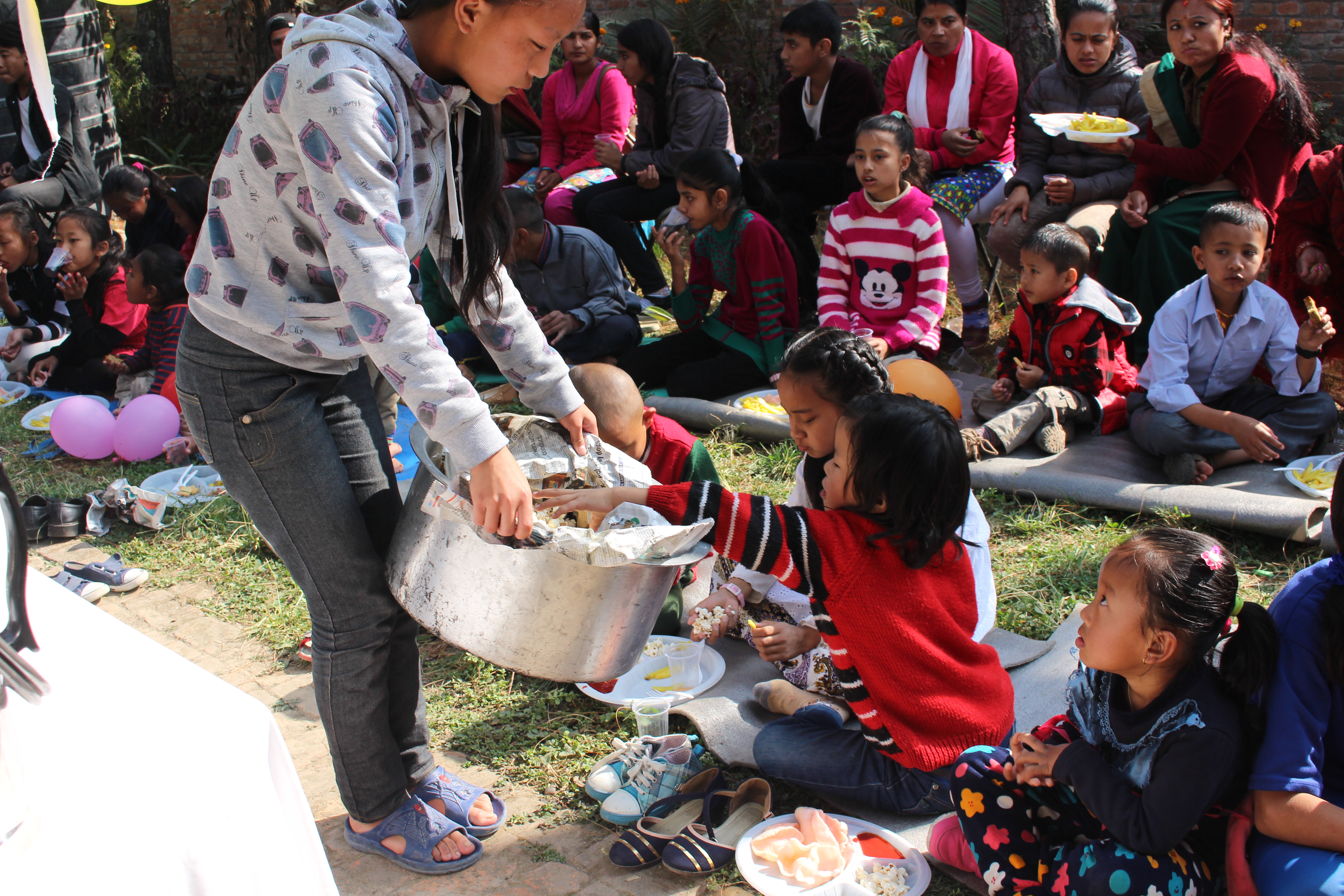 Neben Nepali Masala Milchtee, Softdrinks, Kuchen und Keksen gab es für Kinder und Eltern selbstgemachte Pommes und Popcorn.