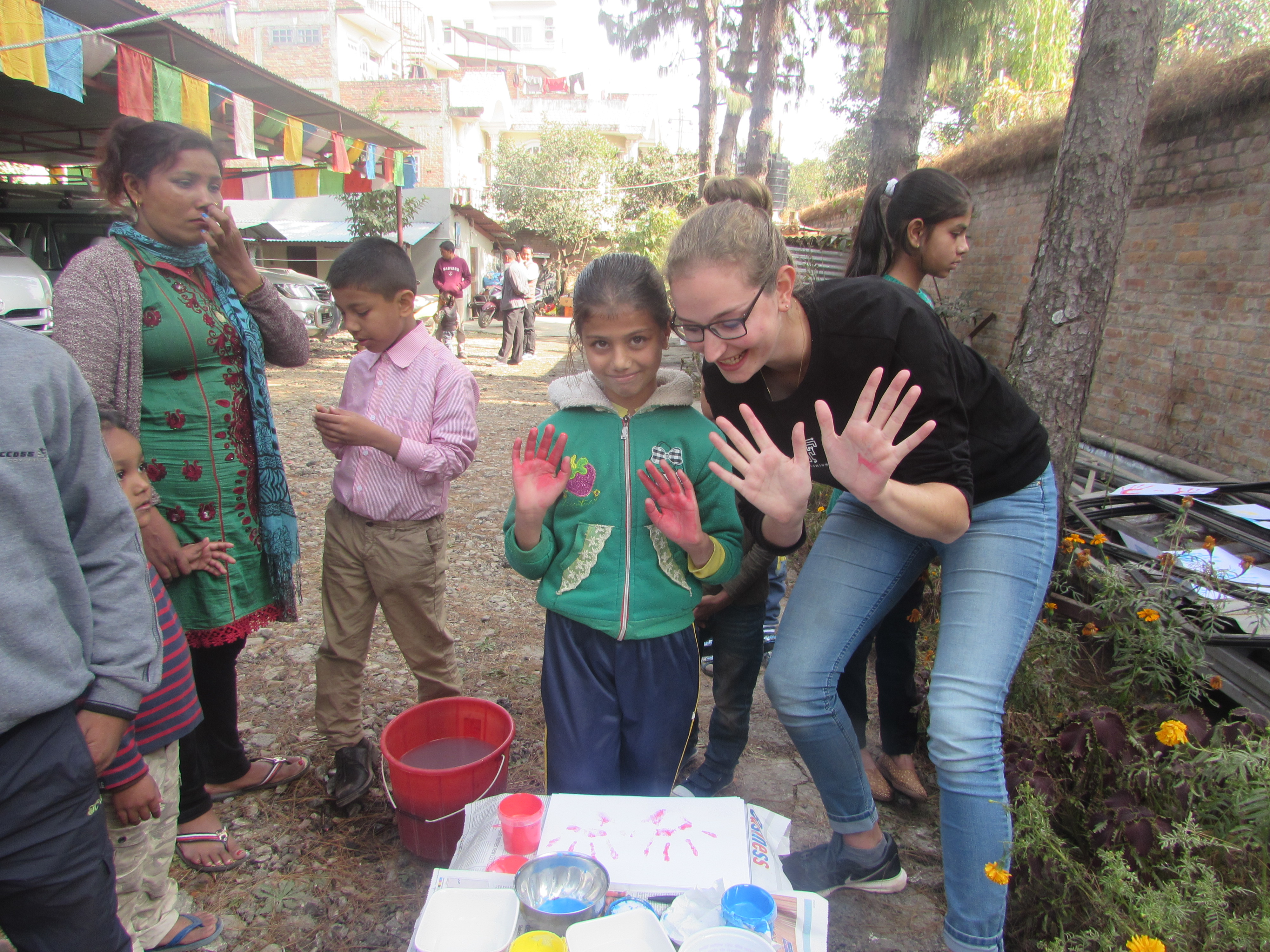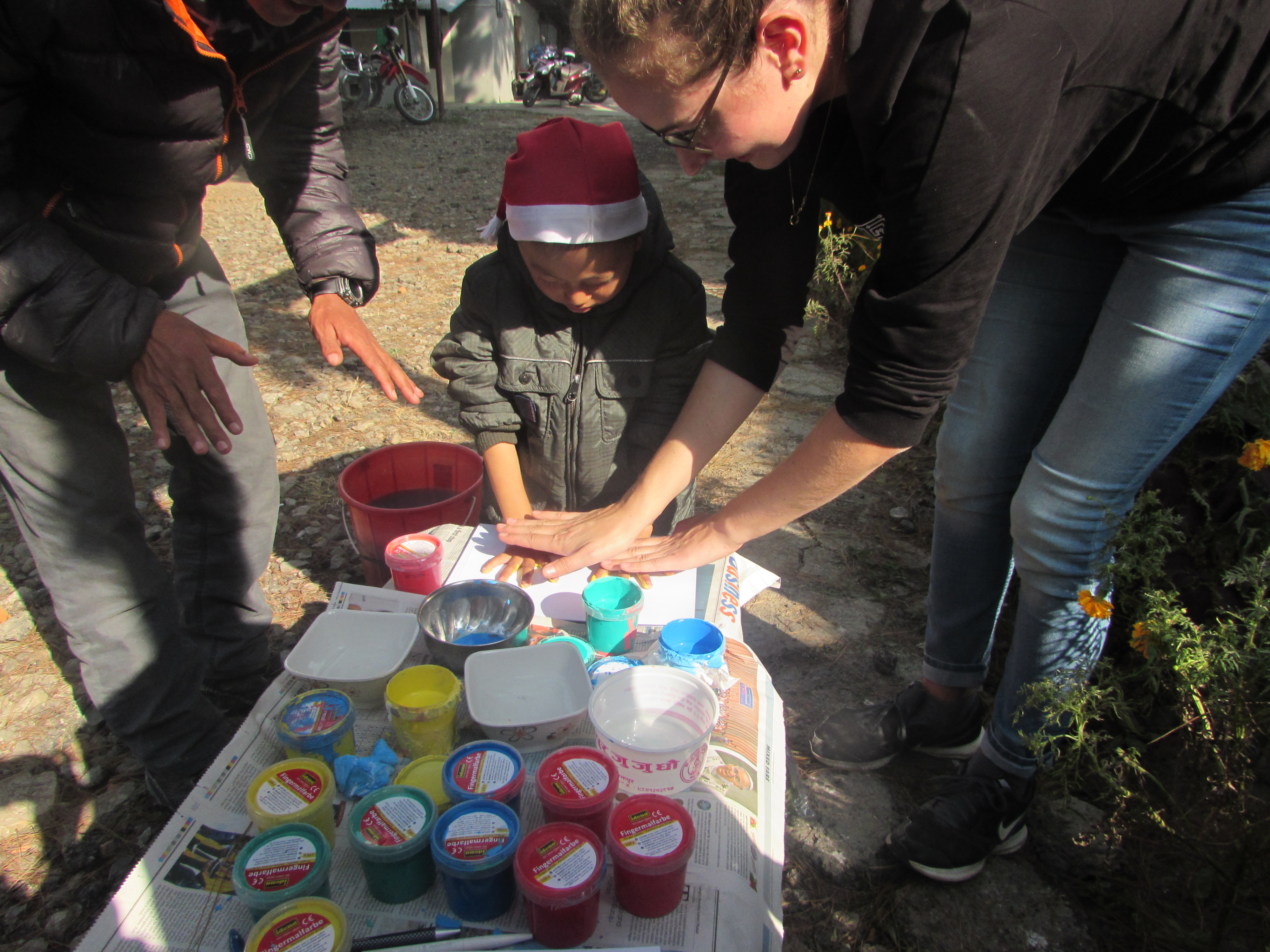 Alle Kids durften mit Fingerfarbe einen eigenen Handabdruck machen wie im Logo des Nepali-Rotznäschen e.V.